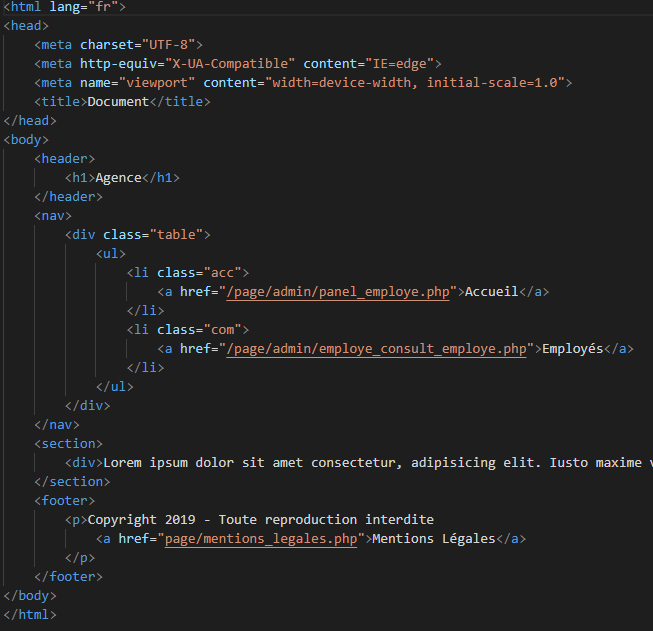 La structure du page html